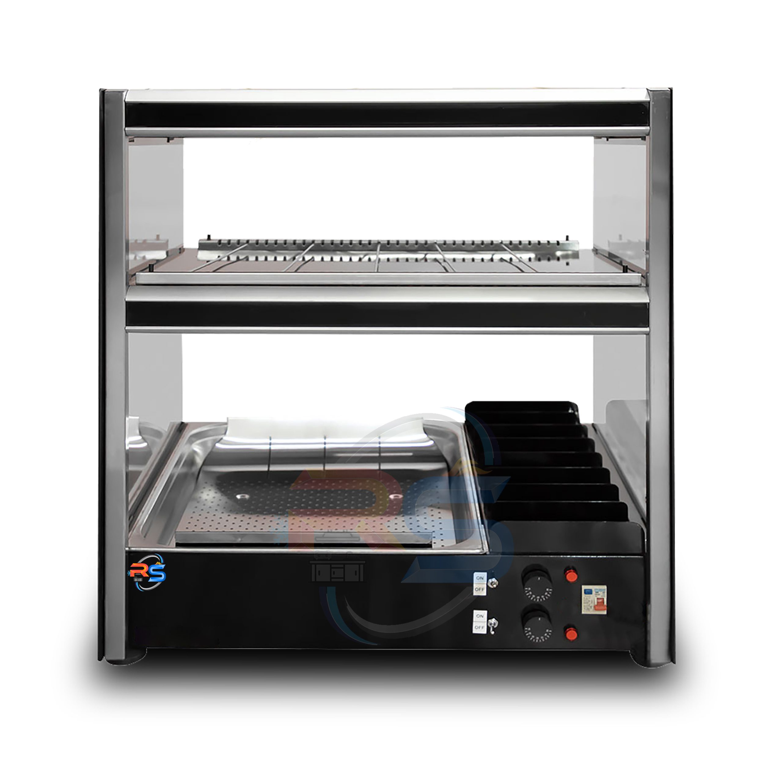 قسمت بالای هر طبقه دو المنت برقی قرار دارد که به طور غیرمستقیم حرارت تولید میکند تا برگر و سیب زمینی هنگام سرو گرم و تازه باشد. شوتینگ مشترک دارای عایق بندی خوبی میباشد تا از هدررفت حرارت جلوگیری شود.